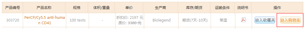 在產(chǎn)品目錄中點擊“放入購物車”,可以將產(chǎn)品放入購車車中。