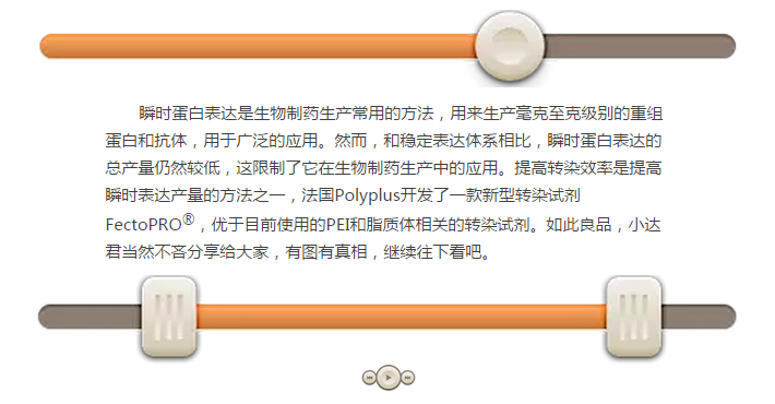 高質(zhì)量質(zhì)粒DNA的制備成本非常高,尤其是在進行大規(guī)模蛋白質(zhì)生產(chǎn)時需要大量的DNA和許多質(zhì)粒。FectoPRO?通過使用0.4~0.6 μg/106/ml的細胞培養(yǎng)液將DNA成本縮減了40%~60%,使其成為生物制藥生產(chǎn)流程的一項經(jīng)濟實惠的選擇。