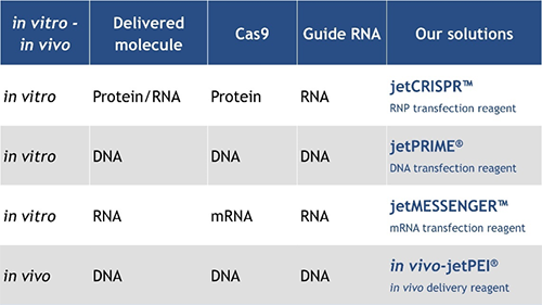 表1:專為CRISPR實驗設計的轉(zhuǎn)染試劑