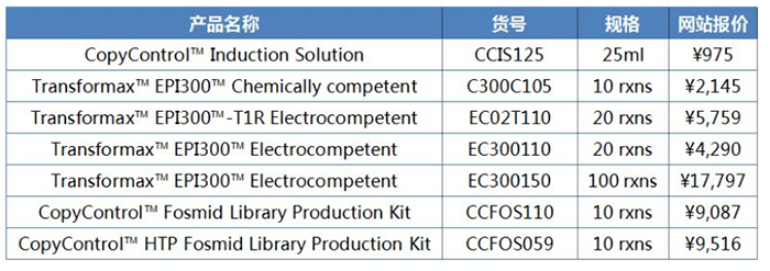 pCC1和pCC2載體含有兩個(gè)復(fù)制起始位點(diǎn):?jiǎn)慰截惖拇竽c桿菌F-因子復(fù)制子和誘導(dǎo)型的高拷貝oriV。其中OriV的啟動(dòng),需要trfA基因產(chǎn)物,由CopyControl?的另一個(gè)重要成分——TransforMax? EPI300 E.coli菌株提供。