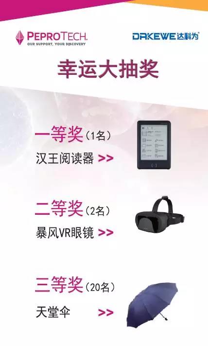 感謝所有參與本次活動的老師與工作人員的配合與支持!達科為&PeproTech攜手合作,在本次會議中積極響應,還為大家準備了幸運大抽獎!