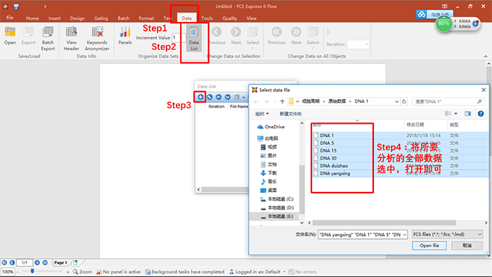 a.粘連細(xì)胞去除之后,可直接調(diào)用Denovo自帶的細(xì)胞周期分析模板,完成數(shù)據(jù)分析,具體操作如下: