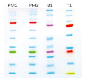 BioSciTM ColorBandTM Prestained Protein Marker產品應用于SDS-PAGE凝膠電泳時,可實時監(jiān)測蛋白樣品的分離情況,也可以用于評估Western轉膜(PVDF、尼龍或硝酸纖維素膜)效率,并粗略的估計蛋白樣品的分子量。