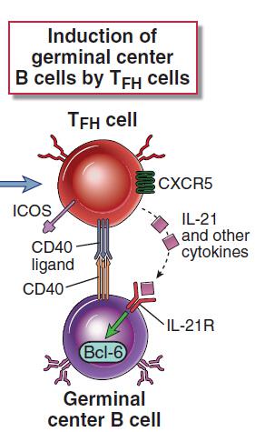 ICOS: Tfh 細(xì)胞上的 ICOS 與 B 細(xì)胞上的 ICOS-Ligand 作用,傳遞協(xié)同刺激信號(hào),對(duì) Tfh 細(xì)胞的產(chǎn)生及存活、 IL-21 的表達(dá)、發(fā)生中心的形成及特異性抗體的產(chǎn)生都至關(guān)重要。